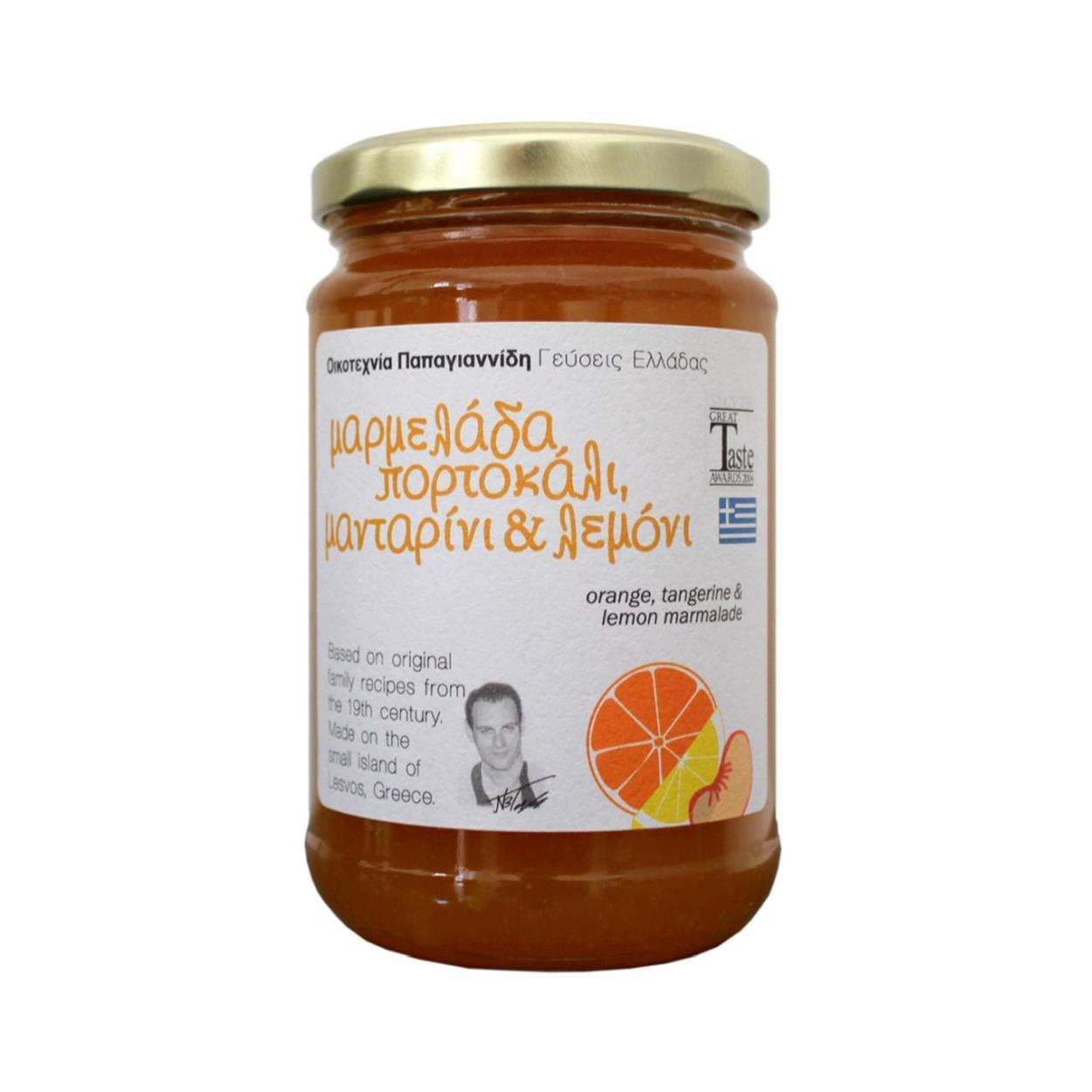 Οικοτεχνία Παπαγιαννίδη: Γεύσεις Ελλάδας - Μαρμελάδα Πορτοκάλι, Μανταρίνι & Λεμόνι (Γυάλινο Βάζο - 380g)